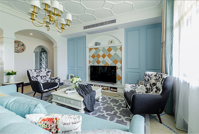 马卡龙蓝,有着自然高贵神秘的气质,它有着大海的深沉沉静,伴随着天空的神秘。所以你永远无法通过它。用明亮而纯净的明亮白色,成就一种优雅的魅力,不仅让别墅传达出一种大方典雅的风格,凸显出时尚风格,还突出了业主独特的审美和品味。