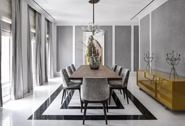 黑白灰从不担心无聊,因为它本身的优点,使它不需要太多的色彩配合,只需用一点金属色调和木料点缀,使整个空间的典雅上升到一个高度。