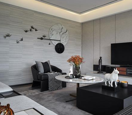 想要打造出高品质的感觉,必然要经过巧妙的色彩搭配,才能显现出丰富的魅力。色彩冷静、线条简单。在本案设计中,设计师充分选用了选用带有高级感的中性色:黑白灰,演绎出一种“低调的奢华”,令空间质感更为饱满。