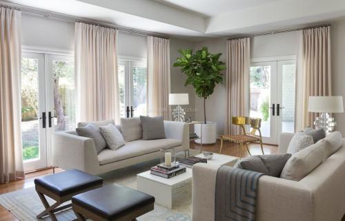 在客厅里,通常需要将多种首饰组合在一起,使其成为视觉焦点的一部分,对称平衡感至关重要。如果有大家具,我们可以从大到小保持两个首饰的中心,从而防止不合作的视觉感觉。