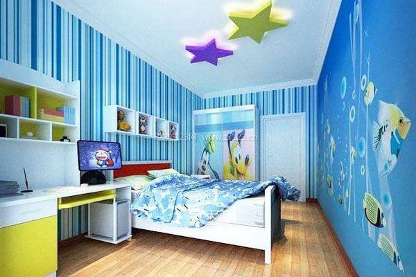 用柔和的蓝色安抚卧室,用冷蓝粉刷卧室的墙壁,用明亮的草绿色营造一种舒适活泼的舒适氛围。